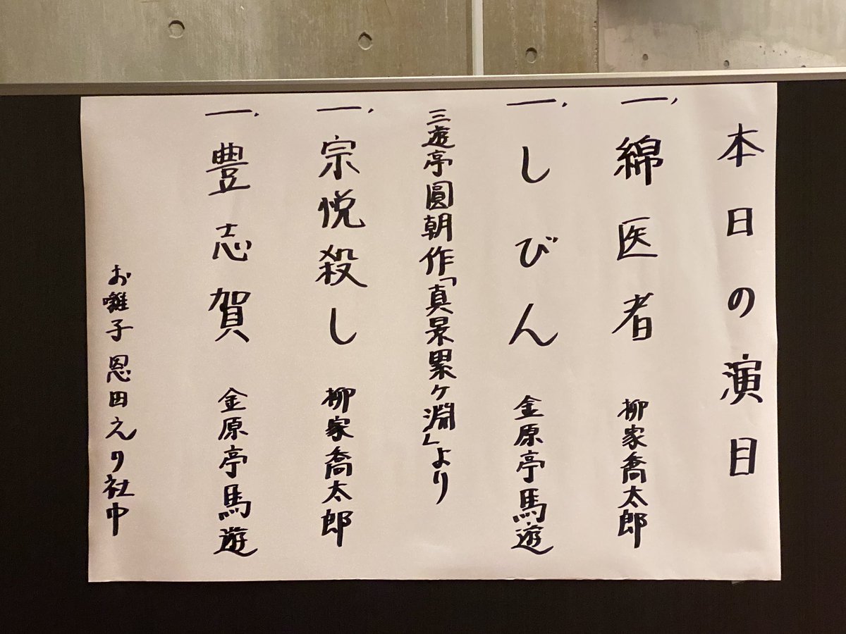 6. 『馬遊・喬太郎二人会』 とっても良い会でした☺️楽しく笑った二席と引き込まれた二席。喬太郎さんの宗悦殺し、すごく怖かった。ドキドキしました。馬遊さんの豊志賀は嫉妬心がドロドロとした感情ではなくただただ哀しく憐れに思えました。 開… https://t.co/G1mj7eUJtQ