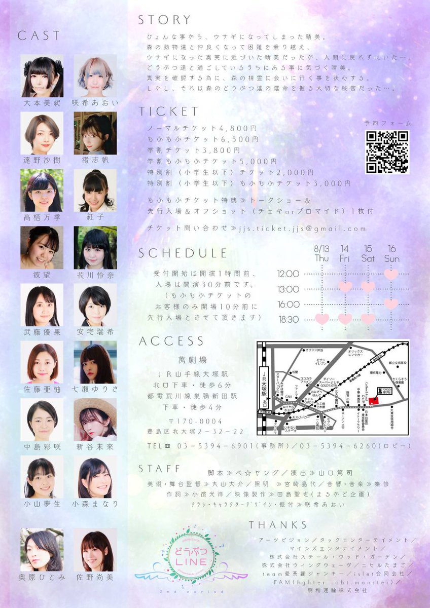 @monushank おはようございます 今日は舞台「どうぶつline2時限目」萬劇場にて を観覧してきます。