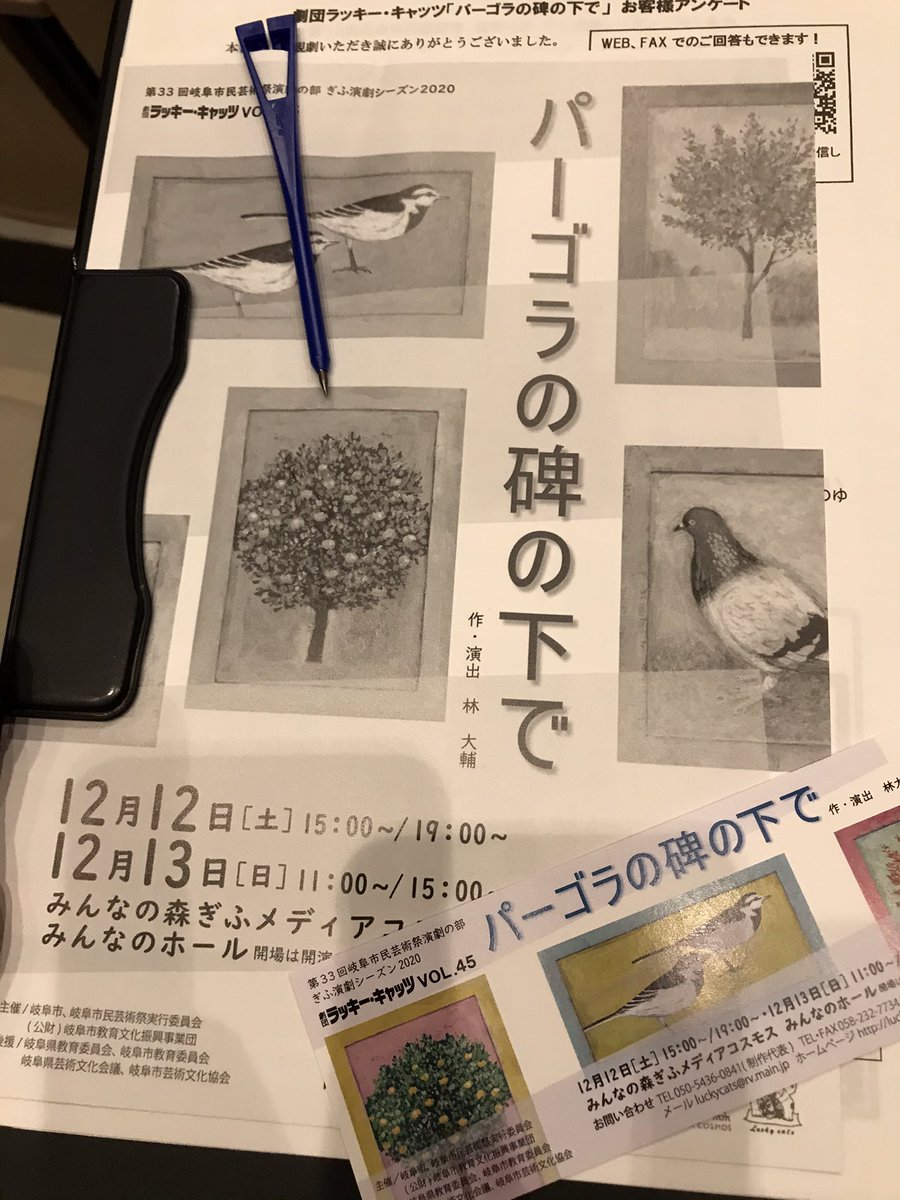 劇団ラッキー・キャッツ パーゴラの碑の下で 11時の回 観劇 キャスト、スタッフ、お手伝い、関係者の皆さん お疲れ様でした 無事に本当の終わりを迎えらますように #劇団ラッキー・キャッツ #岐阜演劇シーズン
