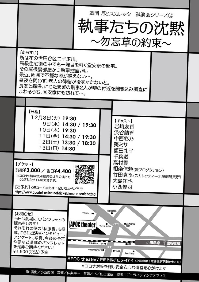 劇団 月とスカレッタ 試演会シリーズ② 『執事たちの沈黙 ~勿忘草の約束~』全公演終了いたしました。 御来場いただいた全てのお客様に心から感謝を。演出、共演者、スタッフに感謝です。ありがとうございました。 https://t.co/1aq9dA7jqn #月スカ #執事たちの沈黙
