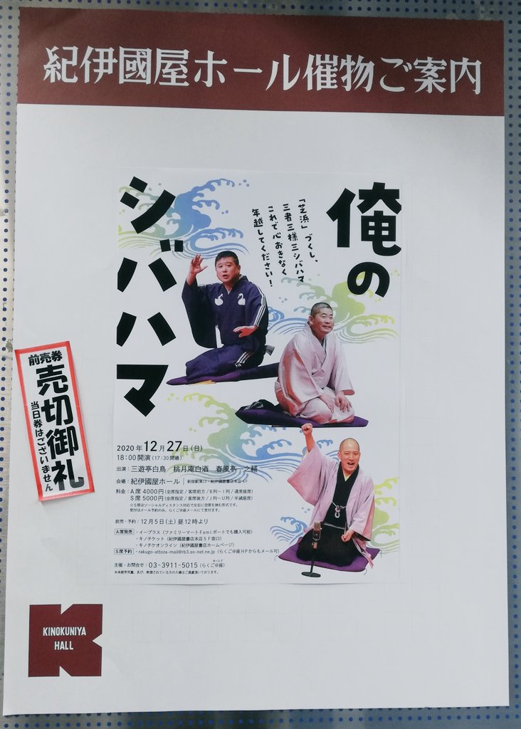 2020/12/27@紀伊國屋ホール 俺のシバハマ【らくご@座】(¥5000) 「手紙無筆」あられ 「芝ノ浜由縁初鰹/ポル浜」一之輔 〜 「芝浜」白酒 「黄昏のライバル/白酒編」白鳥 :企画勝ち〜! 三本締めでお開き。激動の1… https://t.co/LhbPUDgpT5
