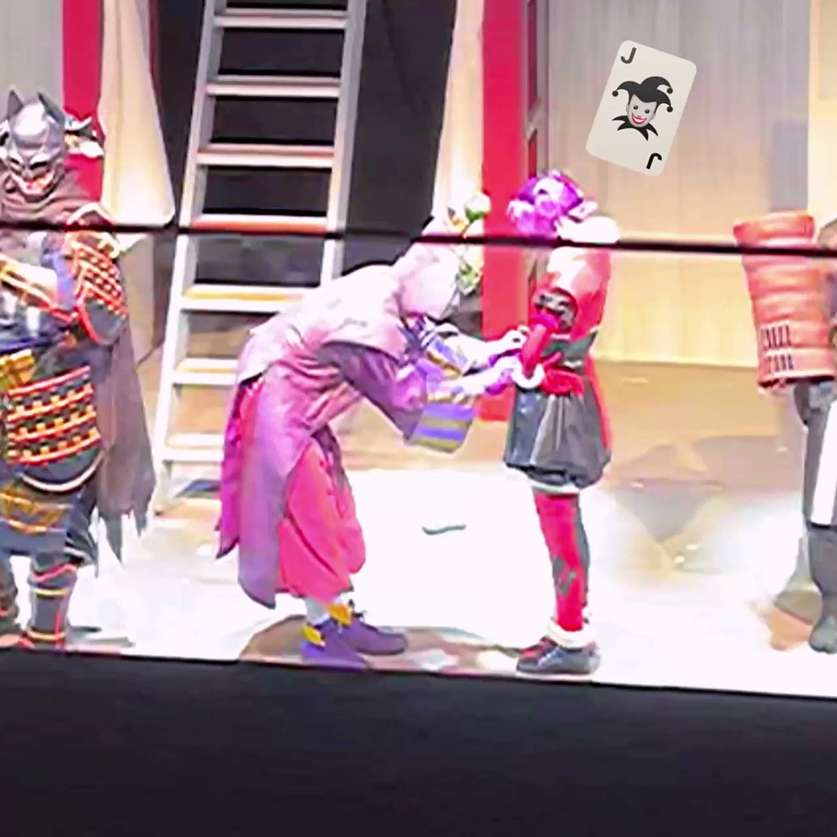 ASUKAジョーカー様と美桜ハーレイちぁのほんわかジョカハレ🃏❤️💜 (撮り方未熟丸で隠し撮りのようになってしまい土下座) ザ・ショー https://t.co/I7XIHJdj7Z #ニンジャバットマン #影チーム #ASUKA #安藤美桜
