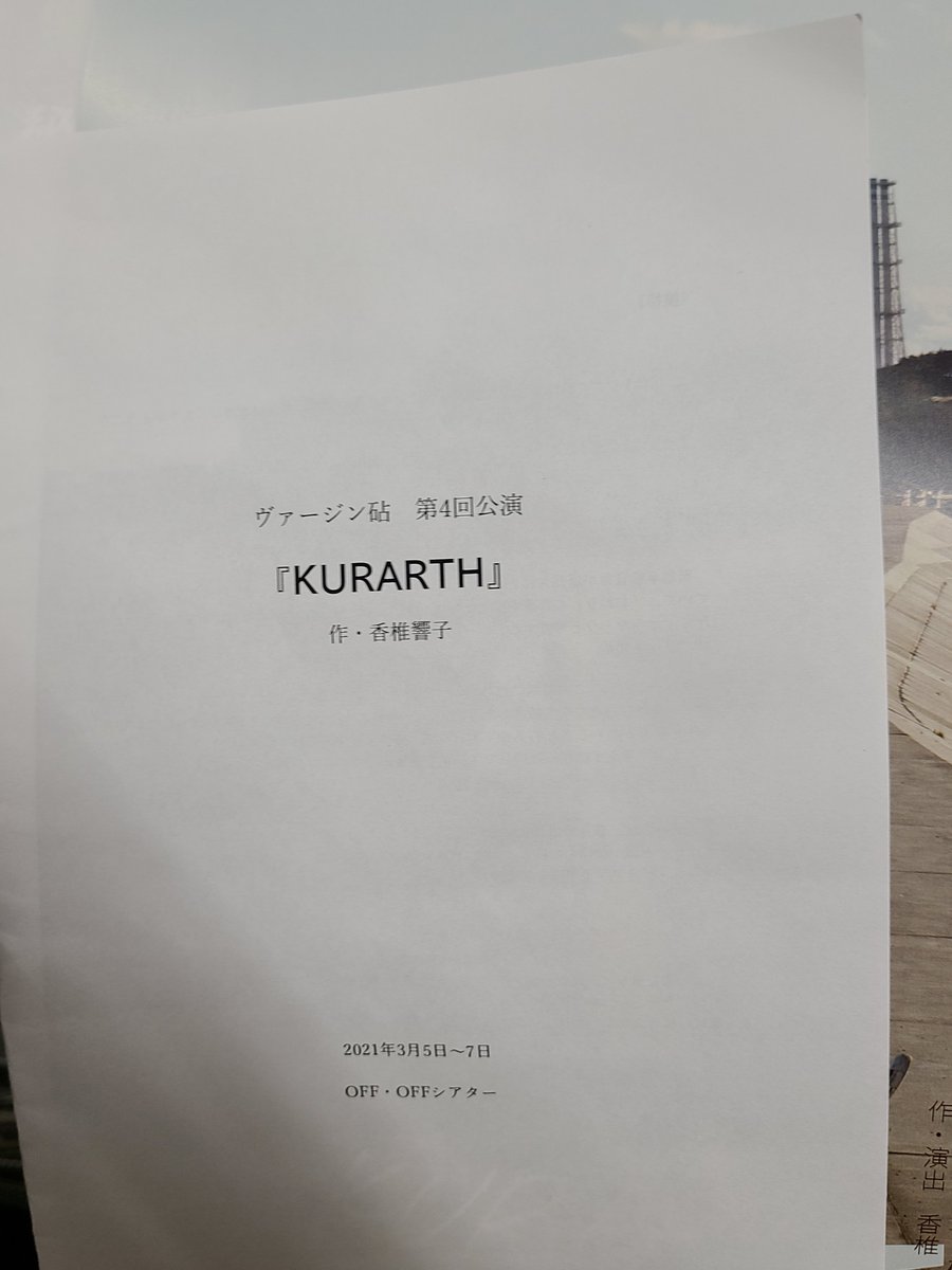 37. ヴァージン砧「KURARTH」は、多分台本をバラしながら見直すところが本番なのではと思ってじまった サテツマガジンに寄稿してくれたエッセイやnoteとは全く別な空気なので違いが面白いなと