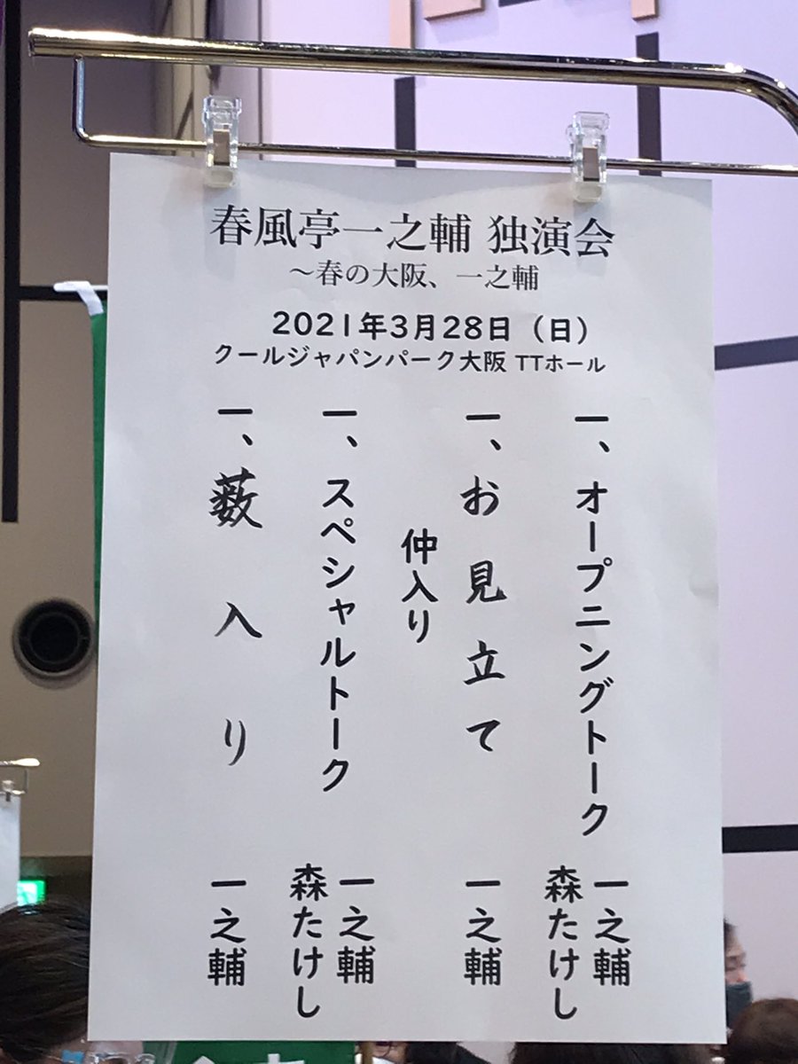 【落語】春風亭一之輔 独演会 ~春の大阪、一之輔 昼の部 2021.03.28 (COOL JAPAN PARK OSAKA TTホール) (春風亭一之輔, 森たけし/オープニングトーク) 春風亭一之輔/お見立て, (仲入り)… https://t.co/vxR0o18HAn
