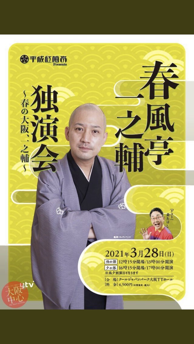 平成紅梅亭 presents 春風亭一之輔 独演会~春の大阪、一之輔 3/28 COOL JAPAN PARK OSAKA TTホール(大阪市中央区大阪城3-6) https://t.co/dYq1pbektA… https://t.co/0xNvSrcu5Y