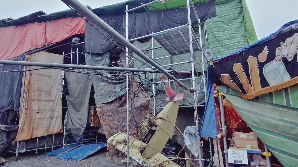 「虹の乾坤」のバラシ、今日もやっていた。安全作業で、事故なくやっていただきたい。 水族館劇場は来年も此処に来る予定だそうで実現を期待している。 https://t.co/lzxDty38dB