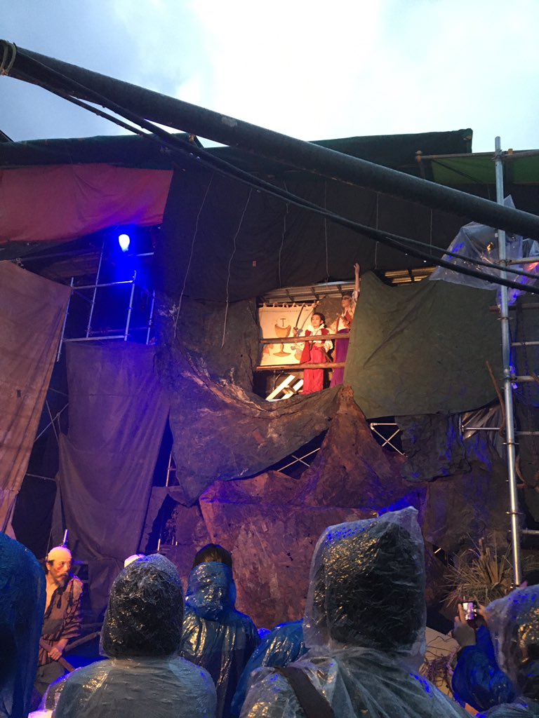 羽村で水族館劇場。土地勘なく方向音痴で辿り着ける気がしない。。。と心細かったが、地元に住む友人が厚意で近道で送ってくれてありがたかった。まさかの雨、冒頭の野外芝居は小雨で合羽が配られた。そして圧倒的なセット、いつもながら水の光景はただならぬ美しさ! 舟と!