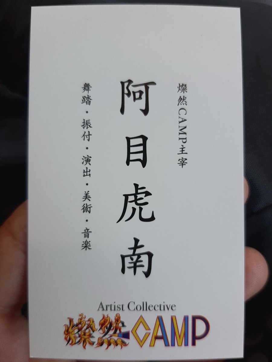 昨日 刷り上がった名刺を師匠に渡したところ、「阿目虎南!良い名前だな」と仰て笑った。自分を構成する要素で一番気に入ってるのは、麿さんに頂いたこの名前。本日 大駱駝艦・天賦典式「Crazy Camel Garden」 楽日、ご舞運を。 https://t.co/QWinFLO0nD