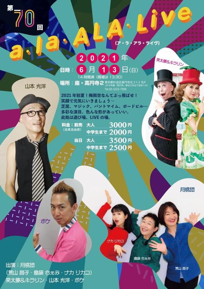 気がつけば来週!!! 6/13 (日) 14時! @座・高円寺2 『第70回 a la ALA live』 女三人芝居【月桃団】の一員としてショートショートをお送りします! マイムにマジックに盛りだくさん!ぜひお越しください〜!… https://t.co/47DzUQAtQL