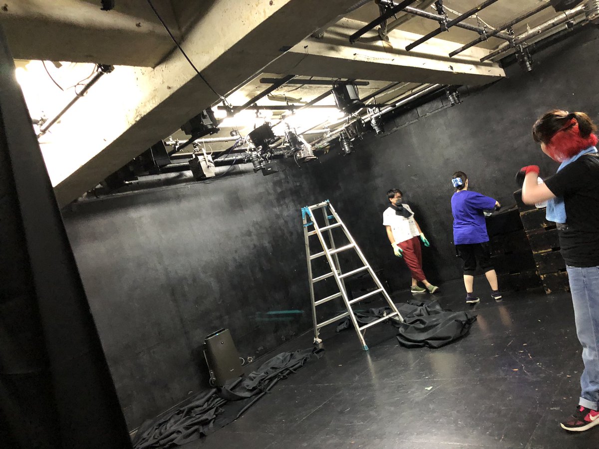 カメラ外だから…とスピード重視で吊ったんで、もうちょっと綺麗にコードの処理をしたかったなーなんて思う照明マン。 (いつもはもっと綺麗なんだよアピール) https://t.co/RBBwyPnPuA #青紫2021