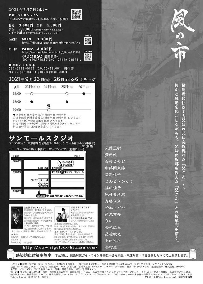激団リジョロ#34 『風の市』 本日9.26の13:00の回は満員御礼の大千穐楽です。 ここまで走ってこれた事に 共演者、スタッフさん、お客様、ご協力者様、支えて下さる皆様に感謝です。 東京の片隅で、熱い風を。 小劇場に、演劇に… https://t.co/azhRzKSR6g