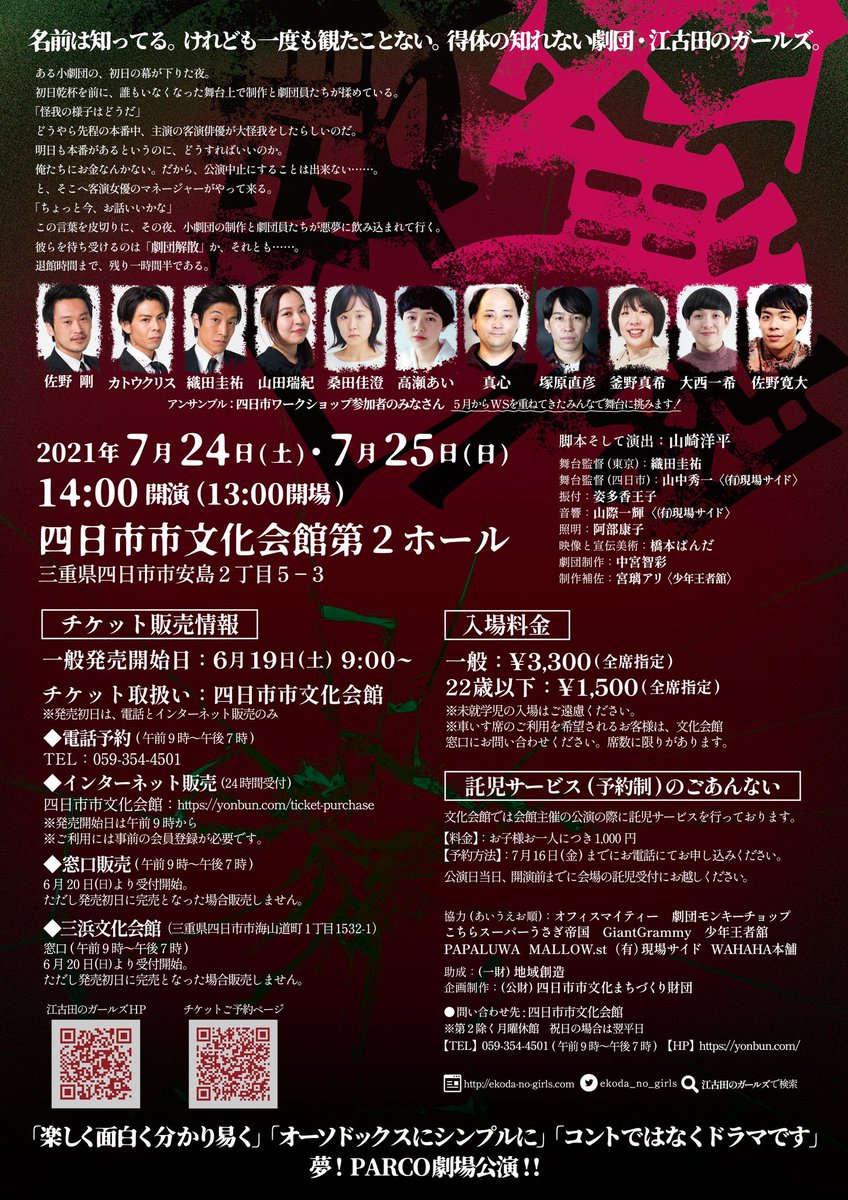 【2021/07/24土 14:00-】[三重県/四日市]四日市市文化会館▽江古田のガールズ 江古田のガールズin四日市「劇団解散」▽https://t.co/a9JY1VUzaL(-07/25)
