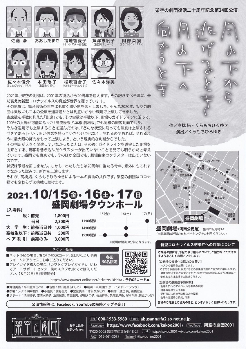 架空の劇団復活二十周年記念第24回公演 「月の下から逃げるとき月の下へ向かうとき」 全公演日程、無事に終了しました。 ご来場いただいた皆様に感謝。公演に参加いただいた全ての皆様に感謝。 https://t.co/SfyHdrChDH