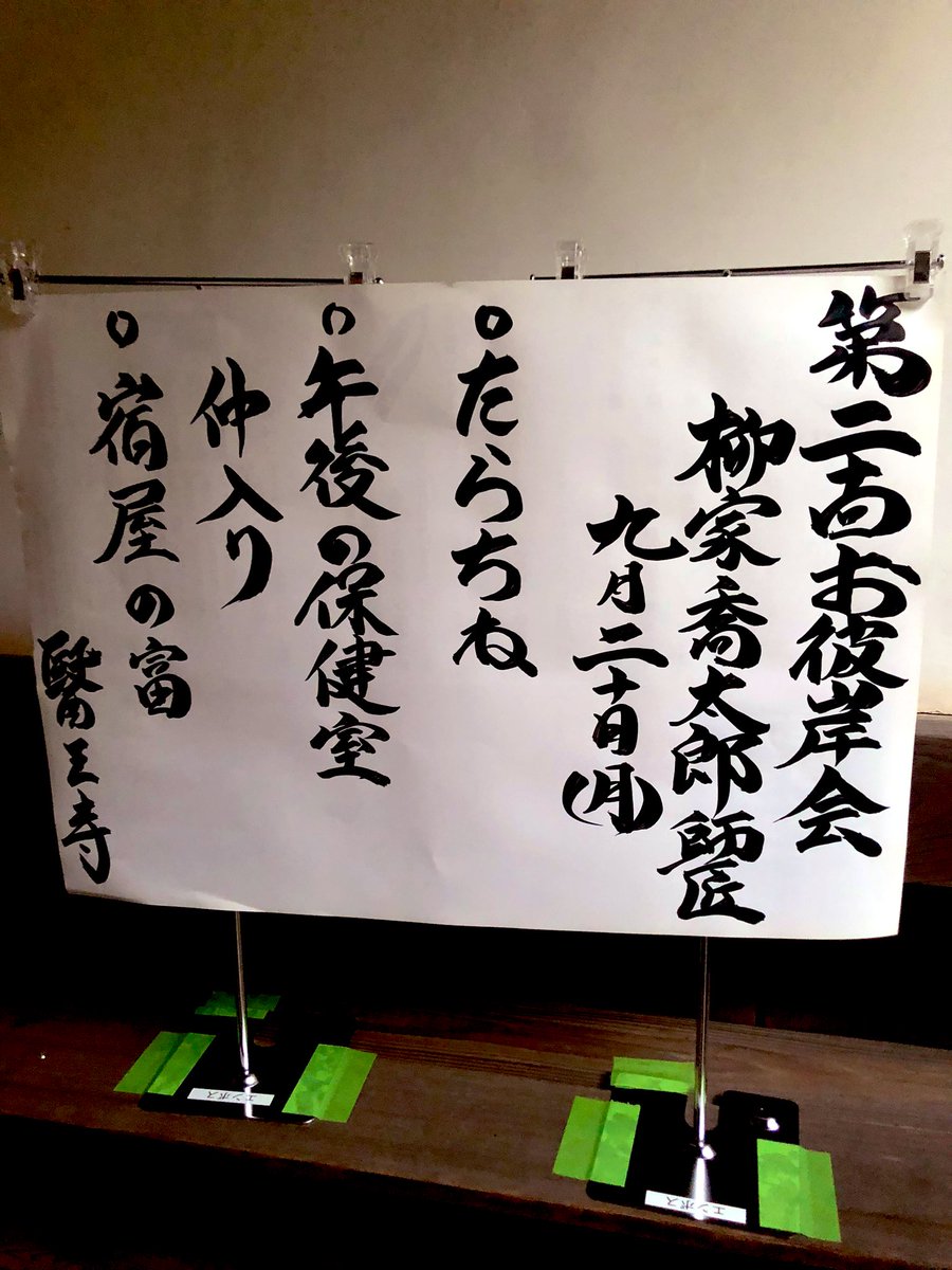 報告します。磐田市医王寺での「柳家喬太郎独演会」、お開きとなりました。「たらちね」「午後の保健室」「宿屋の富」の三席でした。アンケートによれば、東京からのお客様、御厨駅、医王寺周辺にコンビニも自販機も、喫茶店もなく、たいへん難儀を… https://t.co/3zWCYnBYhz