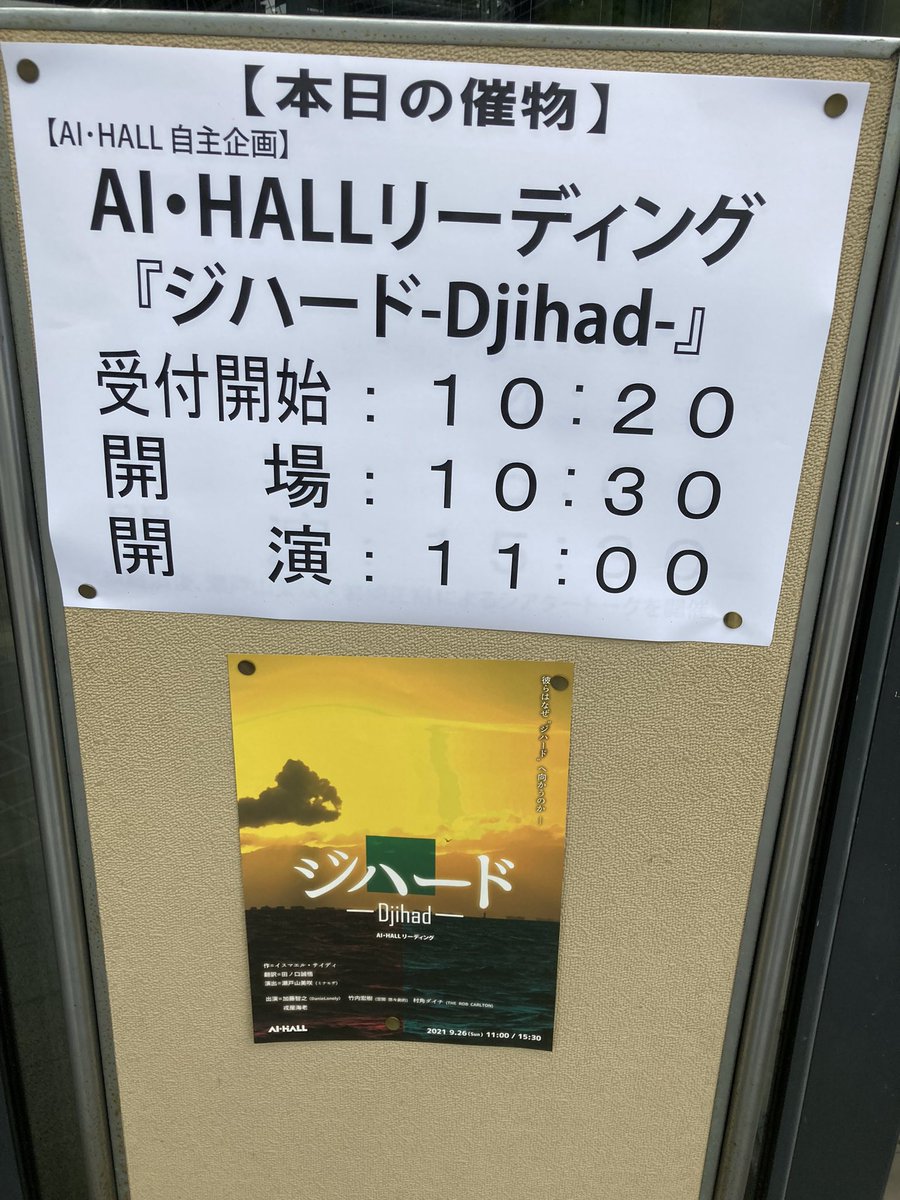 【2021/09/26日 11:00-/15:30-】[兵庫県/伊丹]AI・HALL▽AI・HALL AI・HALLリーディング「ジハード―Djihad―」▽https://t.co/4BFnIKKsy9(本日のみ)