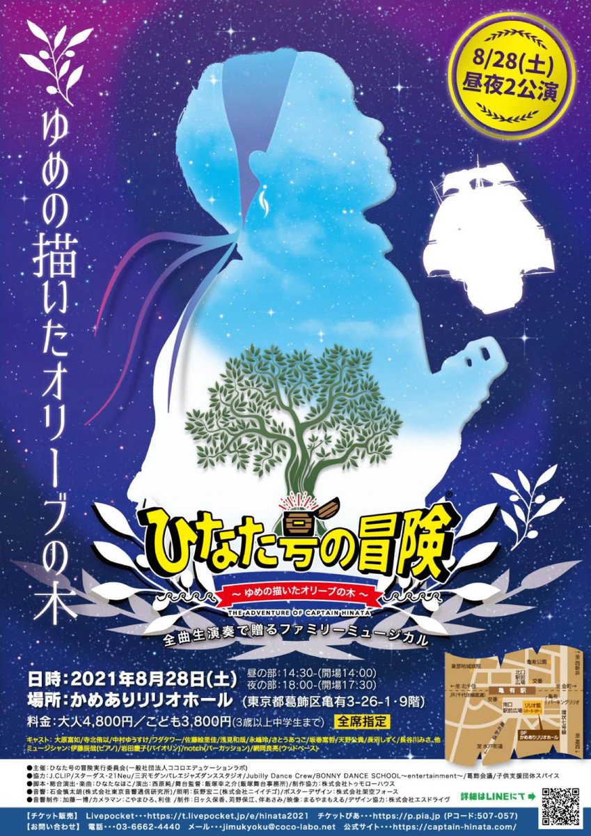 13. 8月28日(土) 『ひなた号の冒険~ゆめの描いたオリーブの木』 @かめありリリオホール 《昼》OP14:00/ST14:30 《夜》OP17:30/ST18:00 Ticket🎫大人4800円/子供3800円 チケット購入↓… https://t.co/bBLC1Irufj