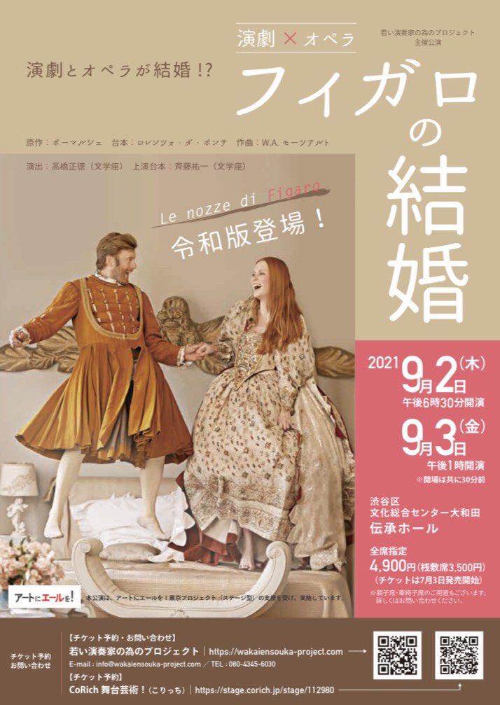 上演台本を担当した 演劇×オペラ『フィガロの結婚』 9/2(木)、3(金)は両日ともチケット完売となりました。 ライブ配信(アーカイブ有り)が御座いますのでそちらをよろしくお願いします! 若い演奏家の為のプロジェクト https://t.co/QNm2K4VHex