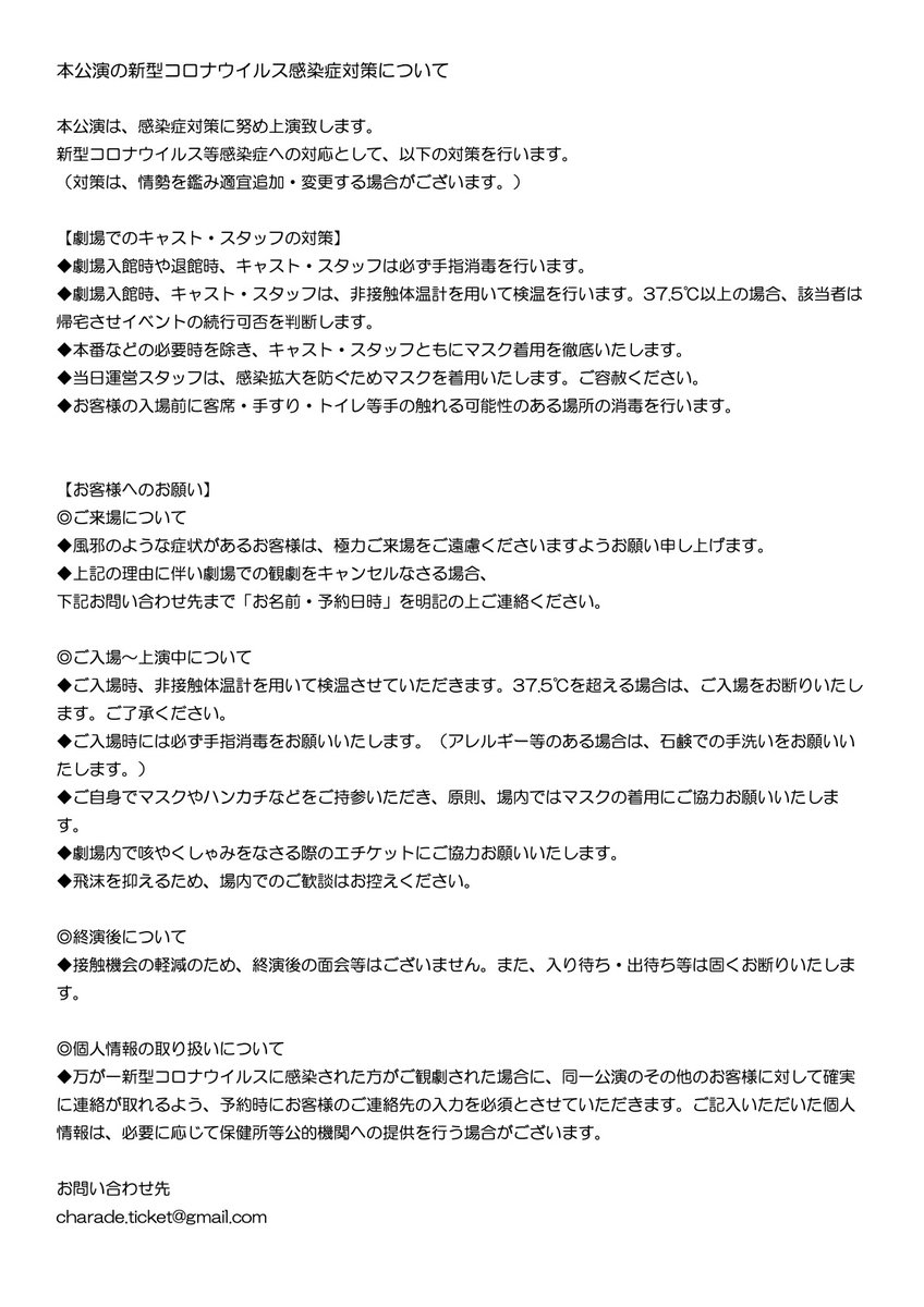 | スタッフ | 制作:宮野風紗音(CHARA DE/かるがも団地) 主催:CHARA DE |