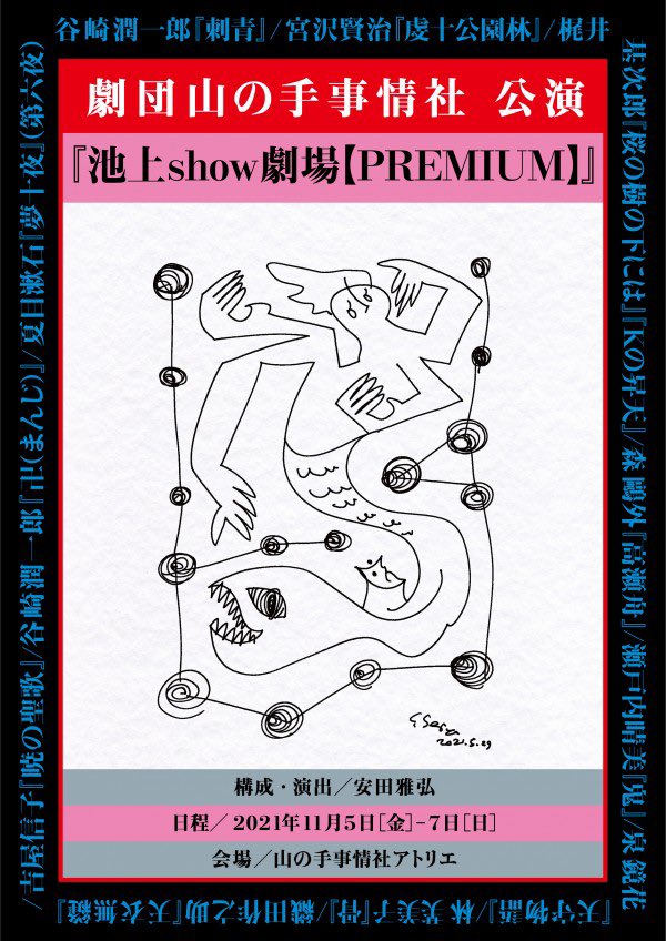 『池上show劇場【PREMIUM】』千秋楽です! Dプログラム:『桜の樹の下には』『Kの昇天』高島領也/『虔十公園林』中川佐織/『刺青』川村 岳 14時10分受付・会場、14時30分開演です。ご来場お待ちしております。※アトリエ… https://t.co/JApxmqPAuY
