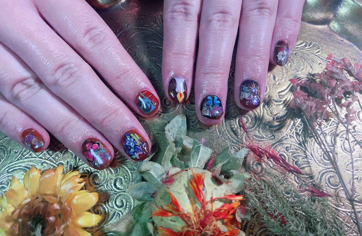 根本宗子さんの新作公演『Cape jasmine』が楽しみすぎて、ビジュアルイメージでいおりさんにネイルしてもらいました💐🦋 お皿が再現されているのすごすぎです…!!細かい所まで本当にかわいくて見つめています…💓 https://t.co/MDX1FPZAXo