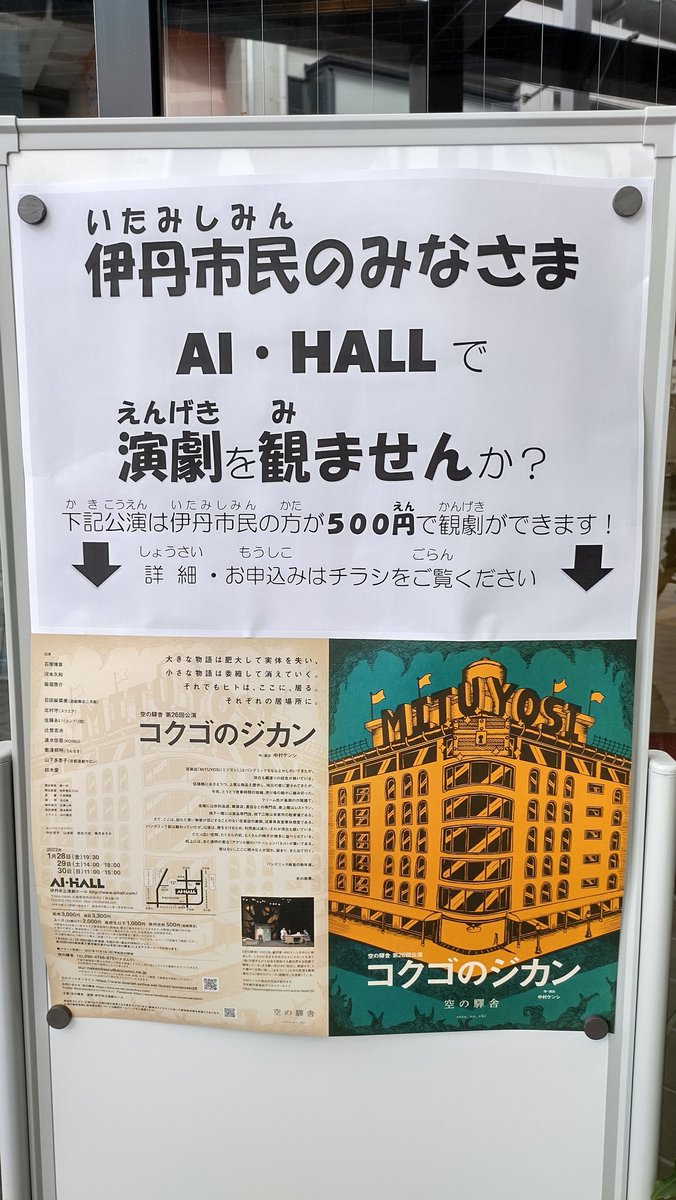 29. 【2022/01/29土 14:00-/18:00-】[兵庫県/伊丹]AI・HALL▽空の驛舎 第26回公演「コクゴのジカン」▽ 約100分▽https://t.co/IqFfh0nXoo(-01/30) #上演時間