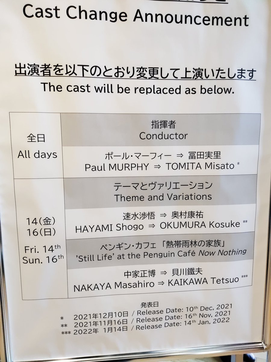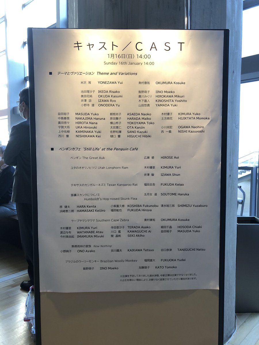新国立劇場バレエ団「ニューイヤー・バレエ」1/15、16鑑賞。無事開演、千秋楽まで終えて本当によかった。「テーマとバリエーション」「ペンギン・カフェ」共にやっぱりベテランの余裕や存在感が光るけど、新キャストにもチャレンジの場があるのはやっぱりいいな😃これからの成長が楽しみ♪
