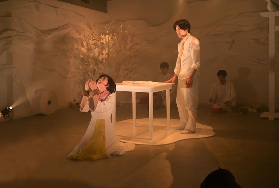 人間劇場「賀茂カモかもめ」昨日無事にゲネプロ終えて本日初日です。 今回は想像以上の作品になっているという実感があります。 SCOOLの白い空間に、舞台美術、照明、衣装と揃った時にこれだけの劇空間になるんだという驚きも。 ぜひお越し… https://t.co/Zm7Nfrihfz
