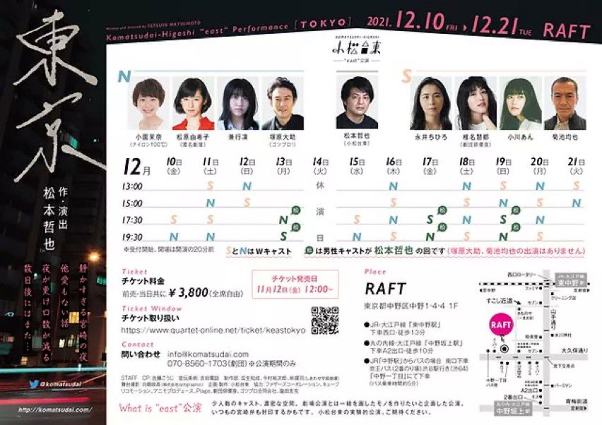 小松台東"east"『東京』 本日4ステージに御来場くださった皆様、そして応援してくださってる皆様、有り難うございました。残り、S・Nチーム各4ステージ、松本チーム2ステージとなりました。お時間のある方は是非ともRAFTでお待ちし… https://t.co/taPbQIQCtf
