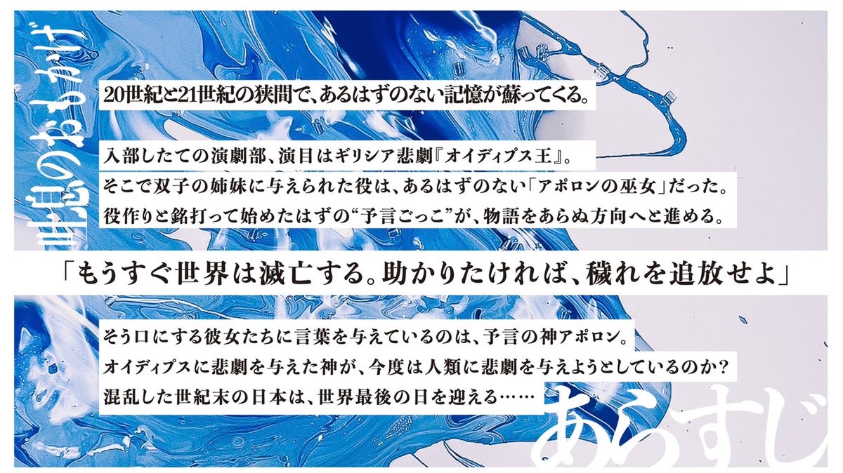 『ギリシア悲劇「オイディプス王」。与えられた役は、あるはずのない「アポロンの巫女」だった。役作りと銘打って始めたはずの“予言ごっこ”が、物語をあらぬ方向へ…