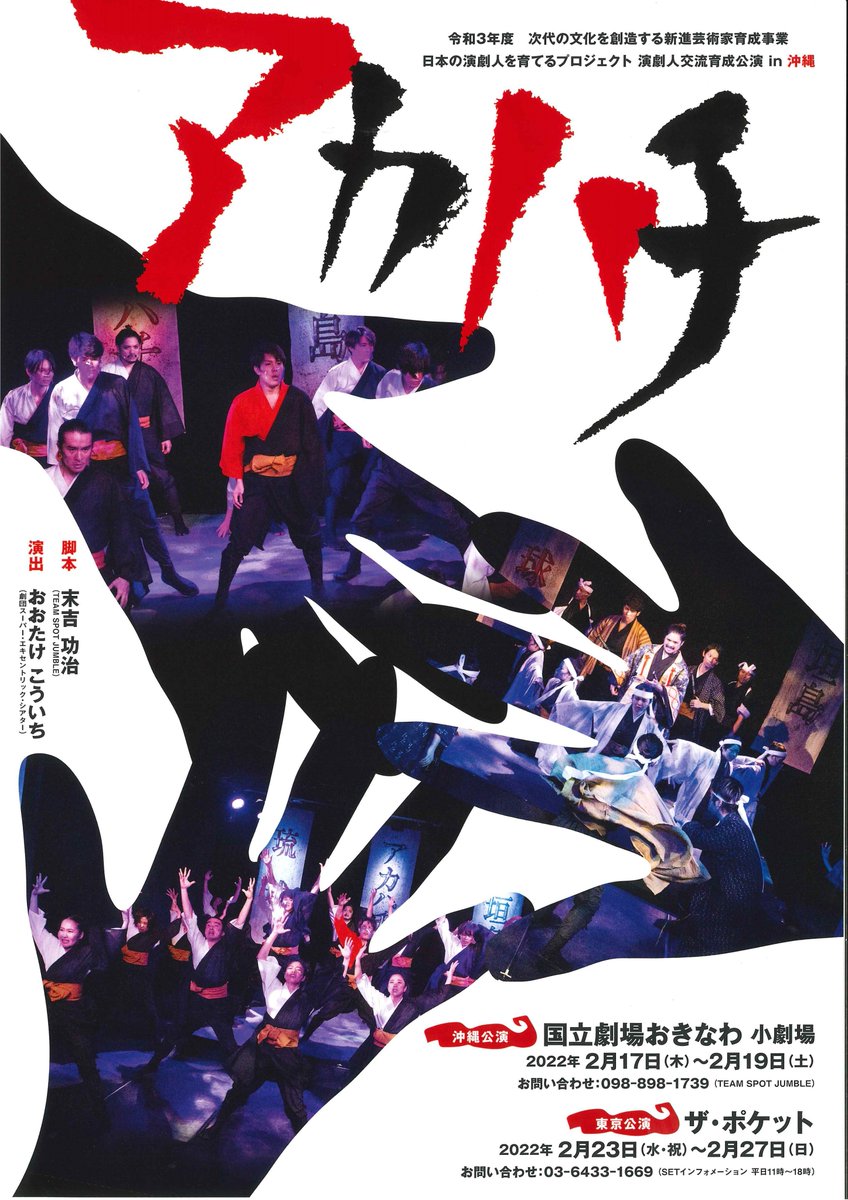 演劇人交流育成公演『アカハチ』 本日初日です! 【沖縄公演】 国立劇場おきなわ 2022年 2/17(木)19:00 2/18(金)19:00 2/19(土)14:00 (東京公演は中止となっております) https://t.co/0Ayn9SRPVr