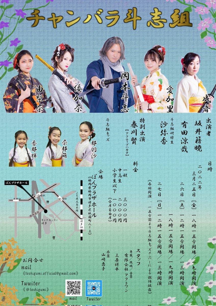 【本日(3/26)の公演情報】 チャンバラ斗志組 『女剣士と鬼面の男』 本日2回公演です。 昼公演 13:00開演 当日券若干枚ございます。 夜公演 19:00開演 当日券ございます。 開場は45分前です。 みなさまの… https://t.co/WiHEADFBTf