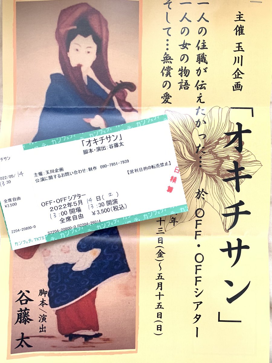 下北沢OFF・OFFシアター「オキチサン」。谷藤太・脚本/演出。良かったヨ。唐人お吉さんの物語。いつも泣く。今日も泣く。オキチサン役の女優さん、きれいな着物姿じゃなくラストのボロを晒してすみません。撮ってSNSにどーぞ、っていうし… https://t.co/kjUGKMHwaW