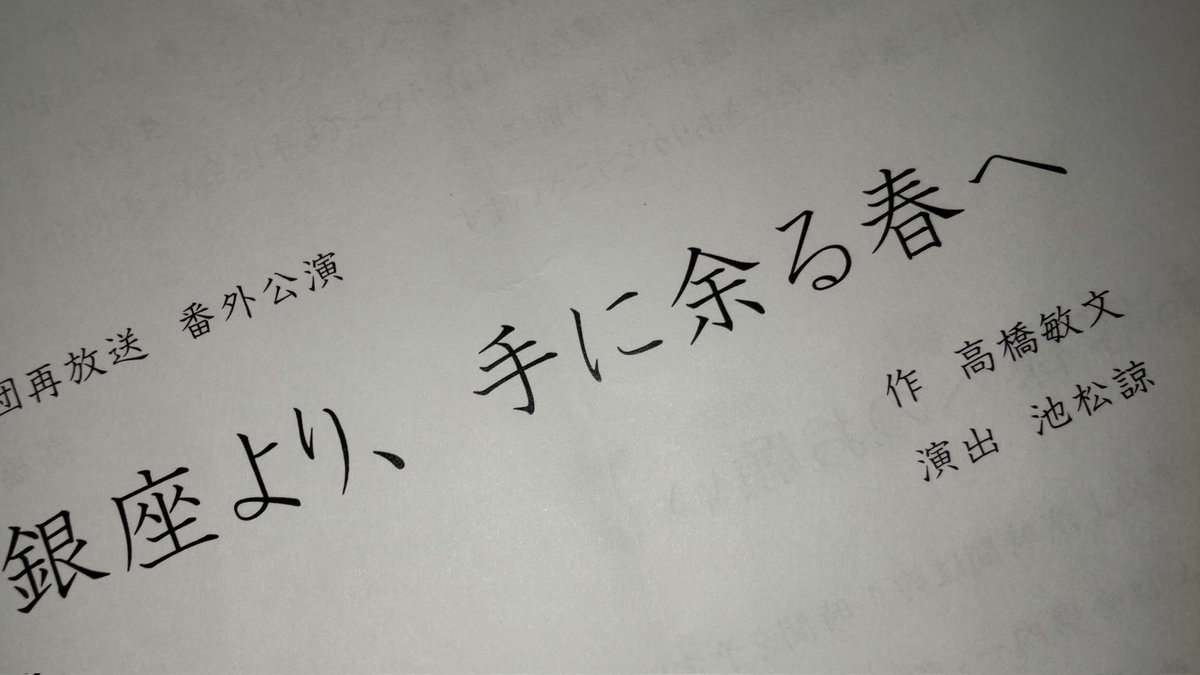 劇団再放送 番外公演「銀座より、手に余る春へ」全公演終演いたしました。 このような時勢に当公演をご観劇頂けましたこと、深く御礼申し上げます。 感想等ございましたらぜひ をつけてツイート頂けますと座組一… https://t.co/Z4LR4EG6dB #劇団再放送 #手に余る春へ