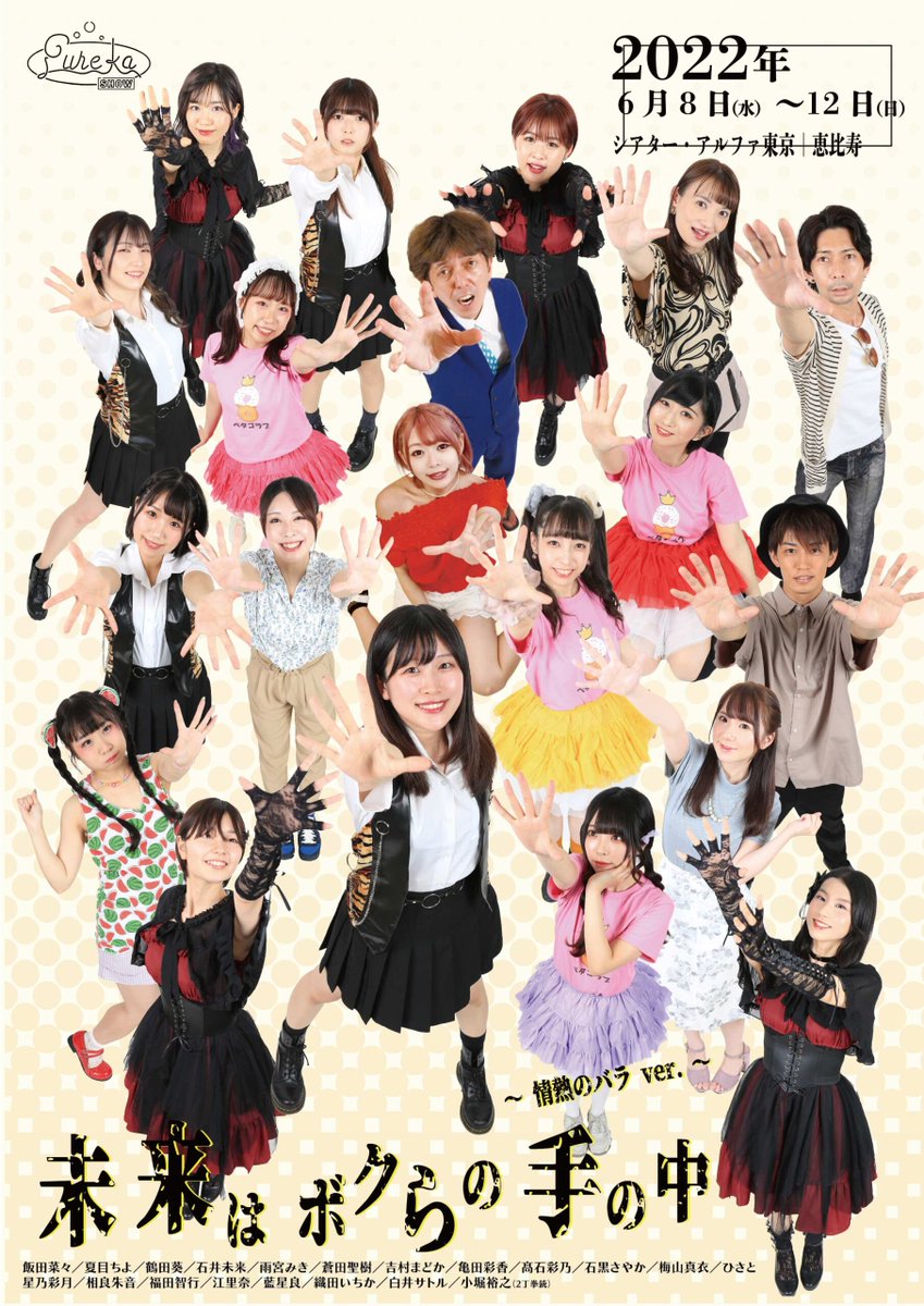 2022.06.10 シアター・アルファ東京 エウレカ座 未来はボクらの手の中 観劇 劇団とアイドルの物語 私自身ドルヲタなのでシナリオが非常に興味深く、キャスト全員にしっかり見せ場があった ライブパートも良かった アイアイタイガ… https://t.co/j13X0PyVXP
