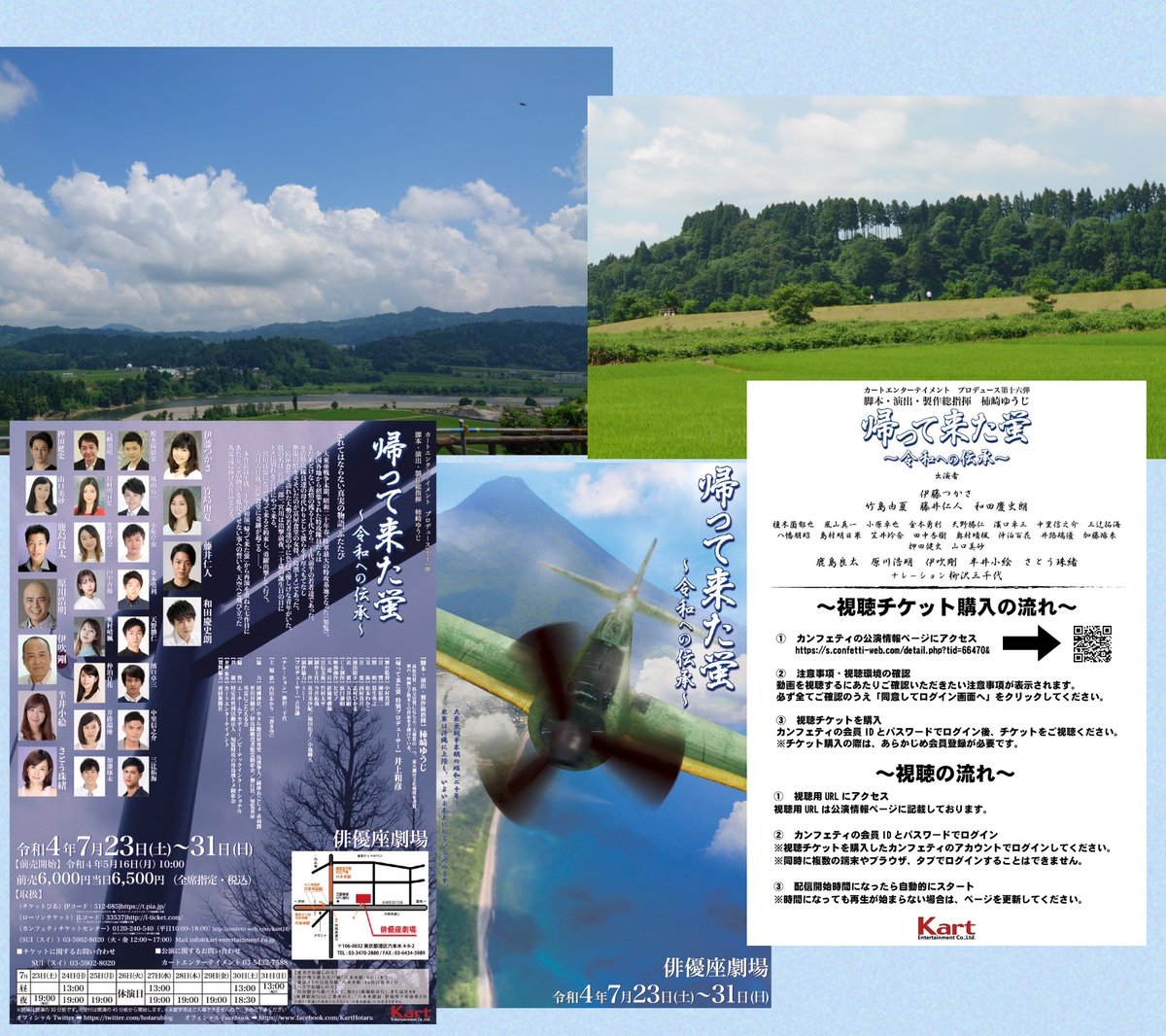 あと3公演!お見逃しなく! 舞台『帰って来た蛍~令和への伝承~』 @Kart_seisaku 脚本・演出・製作総指揮 柿崎ゆうじ(@kakizakiyuji) 日程:2022年7/23(土)〜31(日) ※初日・千穐楽配信有 劇場… https://t.co/ejitcgsIjp