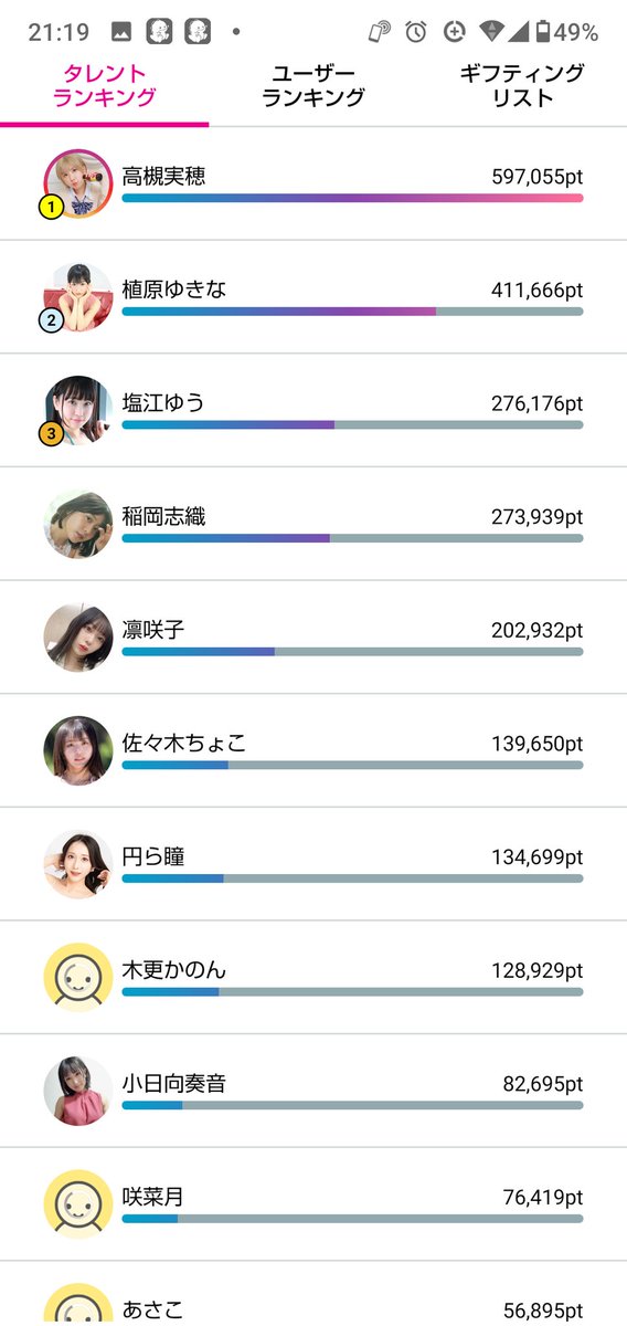 第3回 ■マシェバラ経過 2022/09/21 12:00現在① 1 高槻実穂 613649 2 植原ゆきな 411666 3 稲岡志織 300724 4 塩江ゆう 279994 5 凛咲子… https://t.co/geCY3o8kWa #サンスポGoGoクイーン