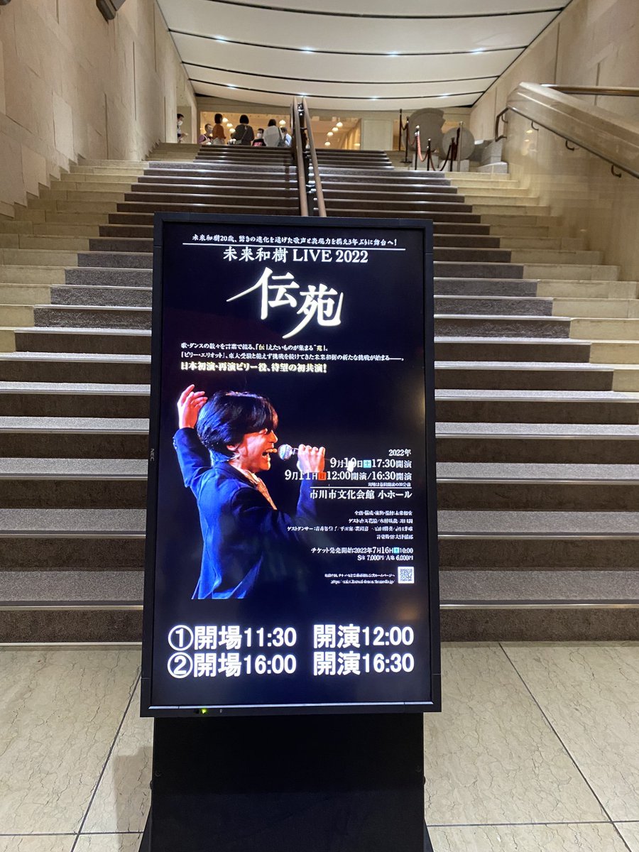 未来和樹LIVE2022「伝苑」@市川市文化会館 マチネを見てきました。盛りだくさんのセトリで今の和樹くんを知ることができ感激。歌の表現力も素晴らしいが、企画構成演出振付全部やっちゃうのが和樹君の真骨頂なんだろな。ビリーズの才能に… https://t.co/Fxuw1v9P7F
