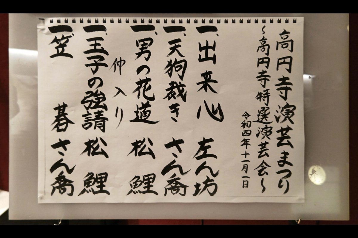 高円寺演芸まつり〜秋の陣〜 第四回 高円寺特選演芸会 公演A 特選演芸会の初回に、 ご来場をありがとうございました! お気にかけてくださった皆さまにも御礼申し上げます。 贅沢過ぎる夜でした。