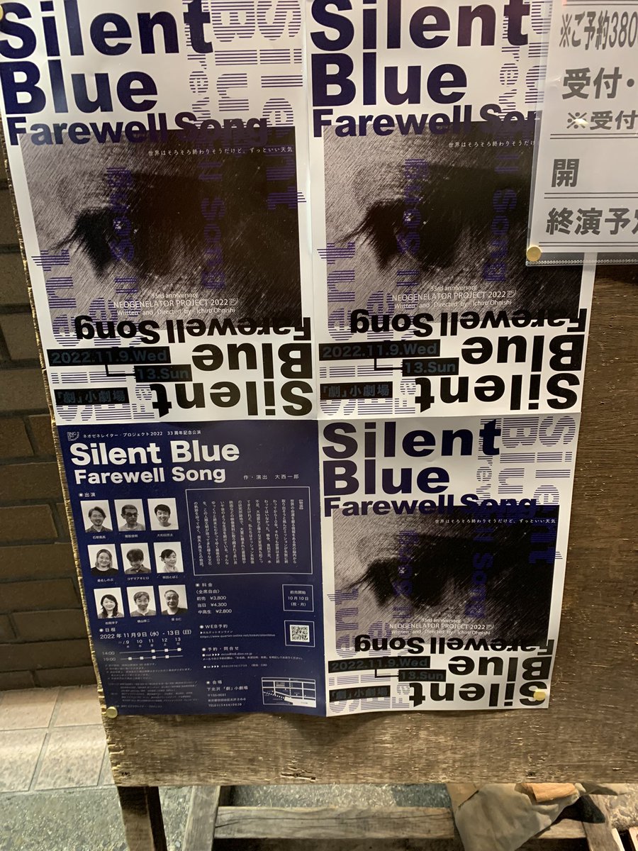 【情報共有】「劇」小劇場のネオゼネレイター・プロジェクト「Silent Blue ~farewell Song~」、受付開始は開場と同じく開演の30分前(全席自由)。 https://t.co/DDbkqMgwxw #受付開始タイミング