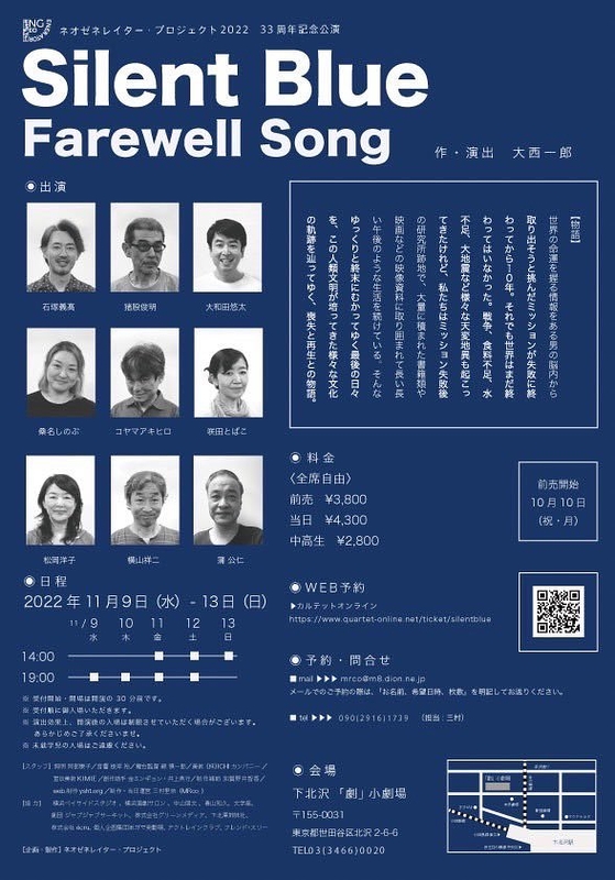 ネオゼネレイター・プロジェクト「Silent Blue ~farewell song~」作・演出:大西一郎 出演:猪股俊明、石塚義髙、大和田悠太、桑名しのぶ、コヤマアキヒロ、咲田とばこ、松岡洋子、横山祥二、蒲公 2022年11月9… https://t.co/jFfjTDpgzn