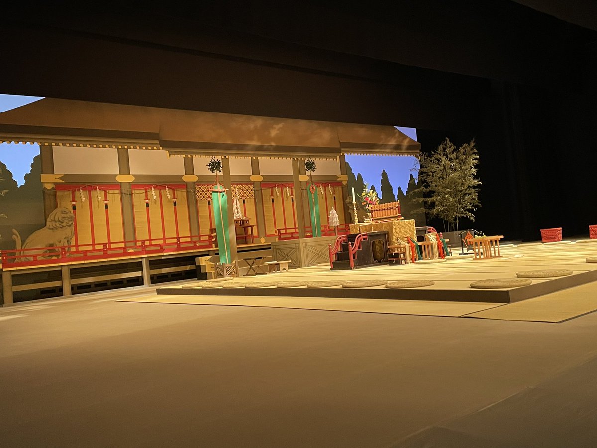 国立劇場で『比叡山延暦寺の神前法要』を拝見しました。 2名の日吉大社の神職と(朱色の傘がさしかけられた)比叡山延暦寺の大僧正と20名以上の僧侶方が花道を通って舞台の神前までいらっしゃいました。皆様で📜巻き物を読み上げている場面もあ… https://t.co/iuvGhB0UWA