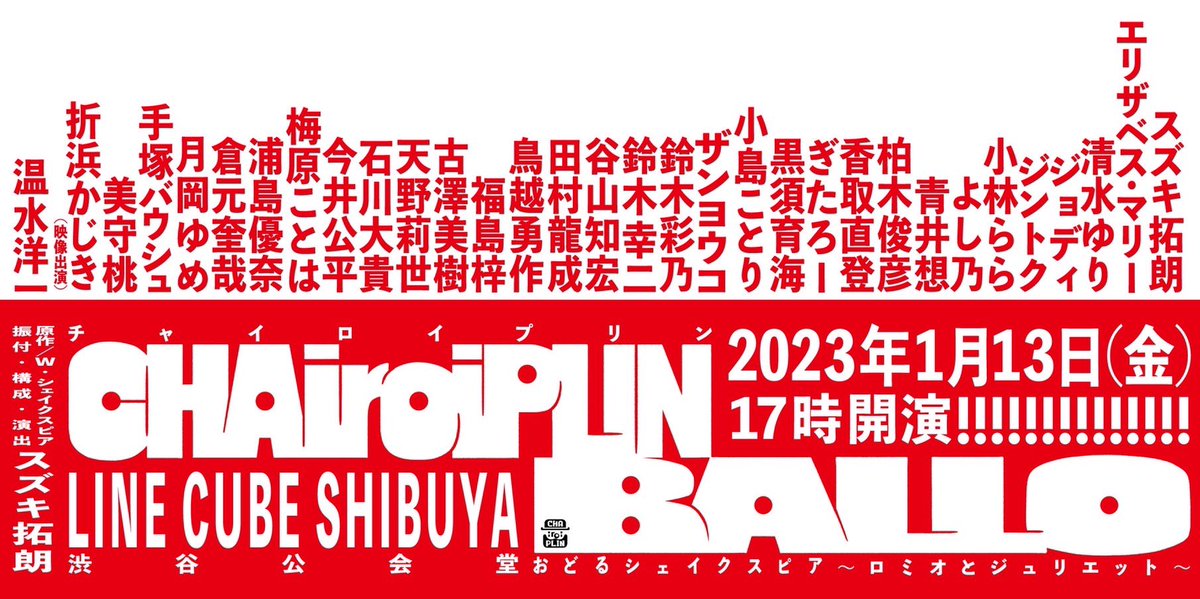CHAiroiPLIN公演 『BALLO ~ロミオとジュリエット~』 2023年1月13日(金) 17時開演 @ LINE CUBE SHIBUYA https://t.co/UmI2EA67zz