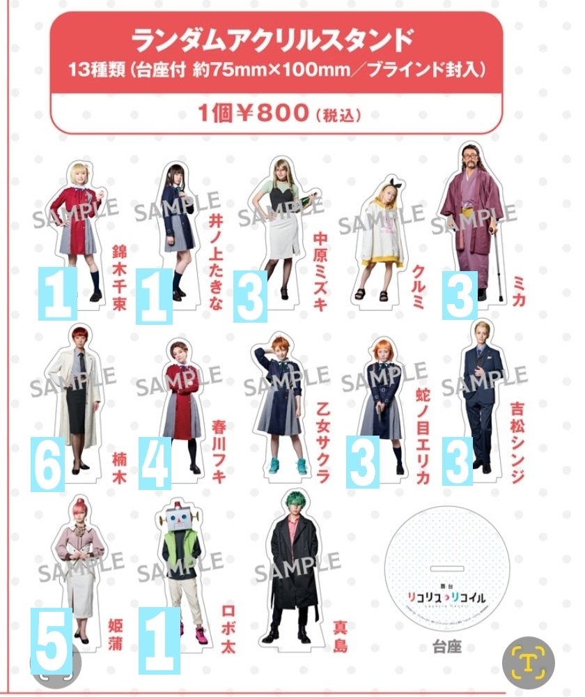 43. 【交換:譲渡】舞台リコリス・リコイル リコリスリコイル リコリコ ランダムアクリルスタンド アクスタ 譲)数字の個数 求)真島/仲田博喜 譲渡) 定価+送料 郵送のみ対応可 検索からでもお気軽にお声掛けください。 https://t.co/0hMn1tWgxW