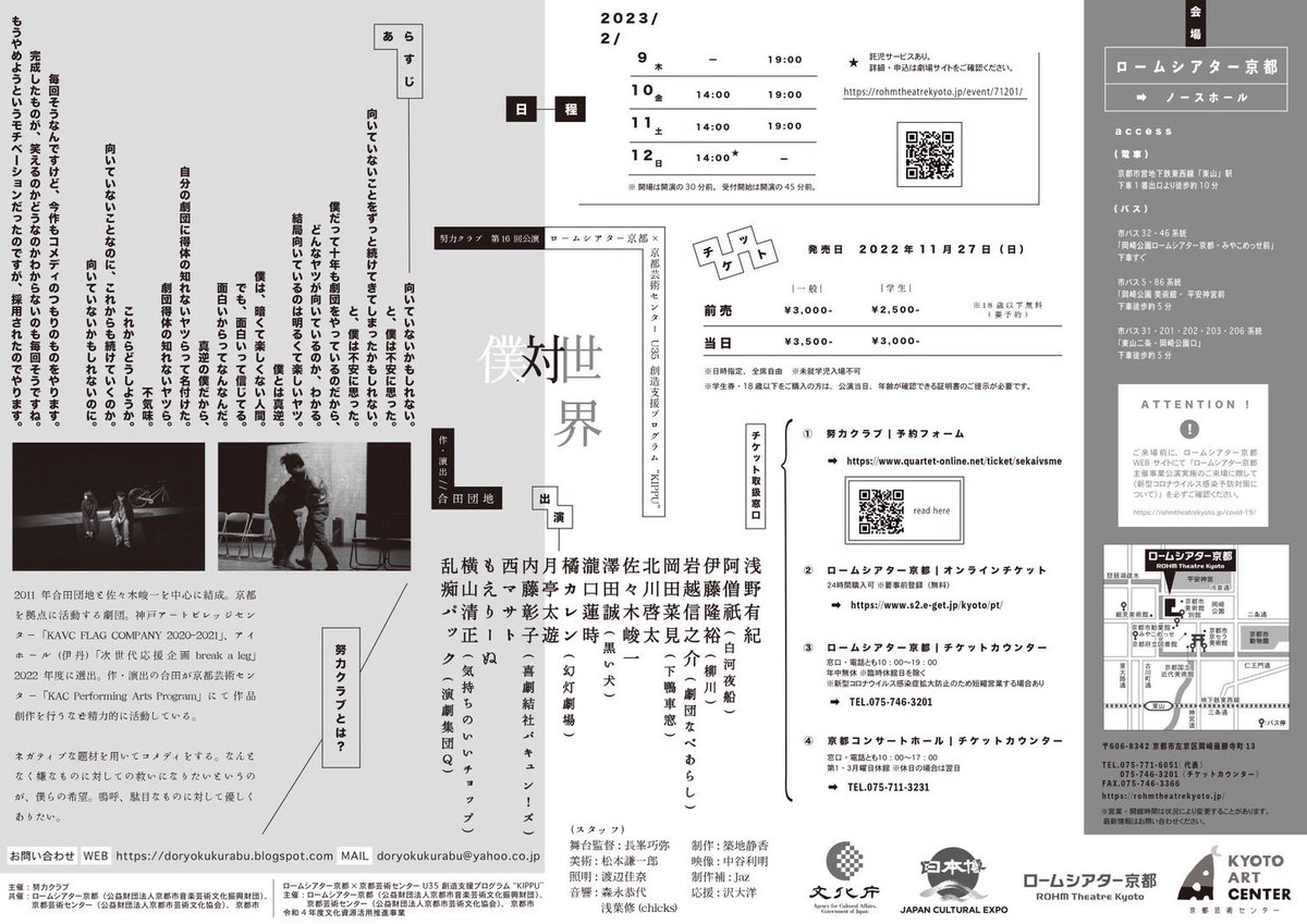 来さえすれば、なんしか観られるさかい、今すぐ準備して来るんだ。大阪からは京阪で三条。もしくはJR京都から地下鉄のりかえて東山。きてきてきてきてきてー!努力クラブ、世界対僕、千秋楽! https://t.co/arfat6sD5j https://t.co/Xcsnf3TJ61