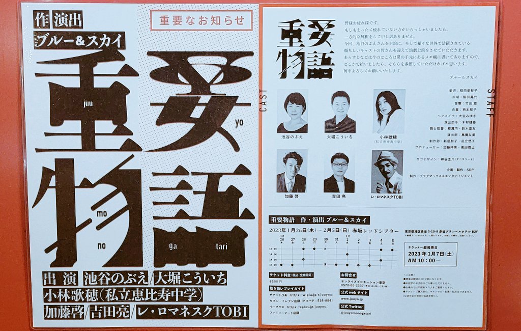 【ブルー&スカイ】作・演出舞台情報 【池谷のぶえ・吉田亮】出演舞台情報 重要写真館は、舞台「重要物語」公式Twitteで是非ご覧ください! @juuyomonogatari https://t.co/tUndmp4sed