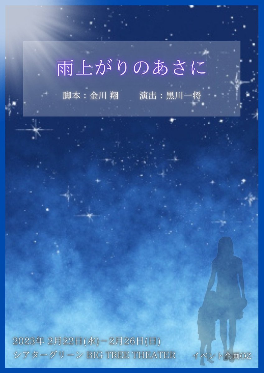 イベント企画OZ vol.16 『雨上がりのあさに』 脚本 金川翔 演出 黒川一将 2月22日(水)〜26日(日) シアターグリーン BIG TREE TEATHER 初の劇団外部公演が昨日全8公演無事終演⏳ 皆様誠にありがとう… https://t.co/EX9eDYATtV