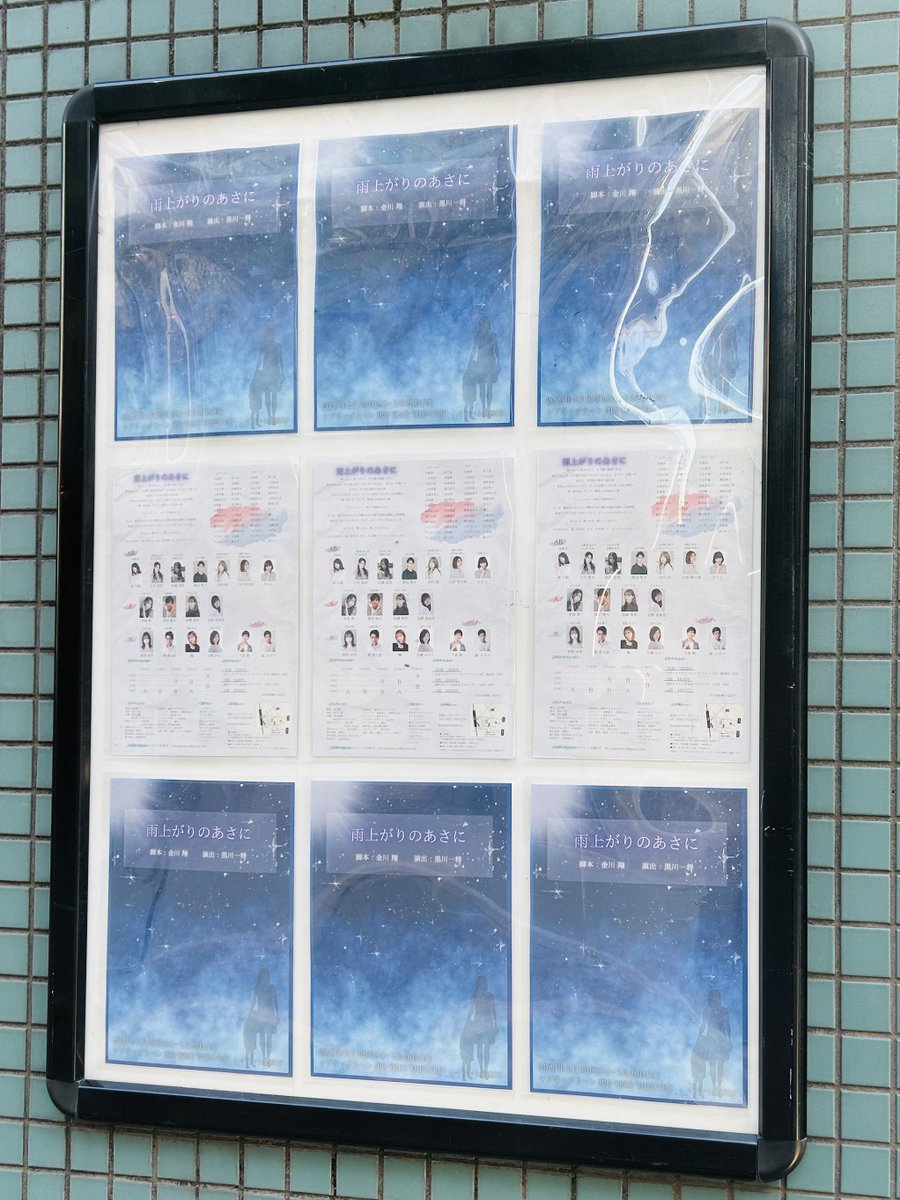 演出舞台「雨上がりのあさに」 昨日もご来場頂き、誠にありがとうございました。 本日、千秋楽!!!!!! 12時〜A班 16時〜B班 早いもので残り2公演。千秋楽です。 少しでも少しでも多くの方にこの作品をご観劇頂けますように… https://t.co/TZR9GIPCkY