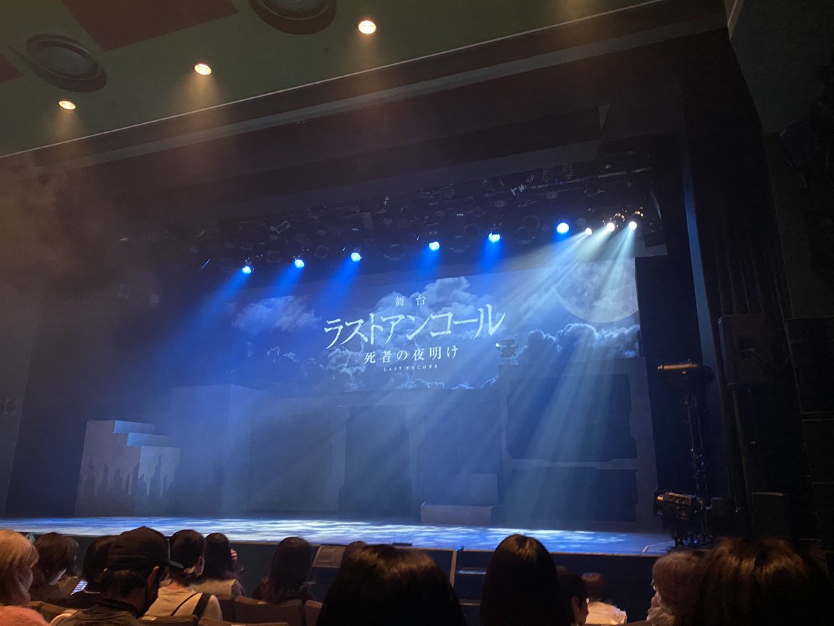 舞台「ラストアンコール~死者の夜明け~」観てきました。5つのエピソードそれぞれの登場人物とのやり取りが面白かったです。仕掛けや照明も良く、感動するシーンもあって楽しかったです。 #舞台ラスアン