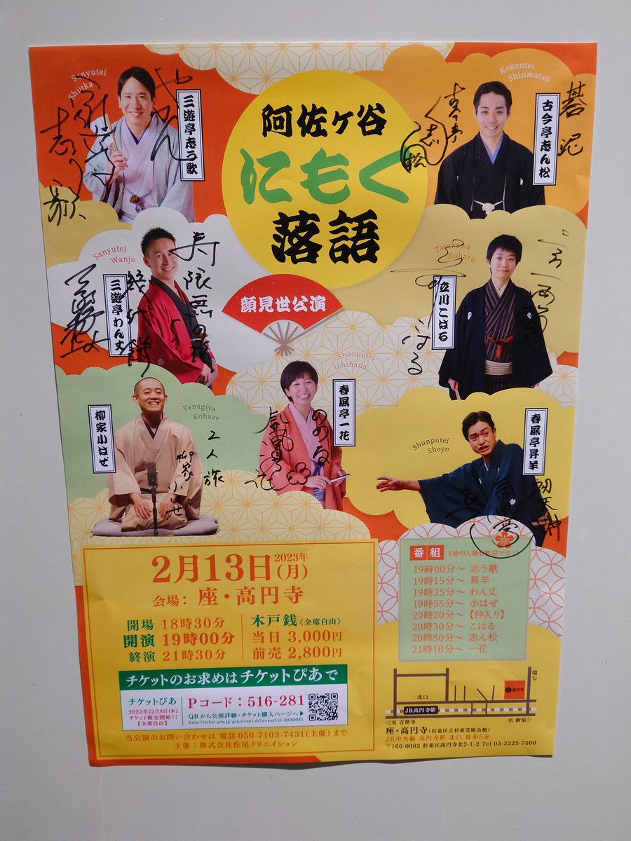 阿佐ヶ谷にもく落語顔見世公演 主催の松尾さんが集客を頑張ってくださり、100名近くのお客様に来ていただきました。すごい! 開口一番の志う歌師匠からトリの一花さんまで、ずっと勉強になりました! 今後、毎月第二木曜にエンゼルウイ… https://t.co/BzaGTGAzjr