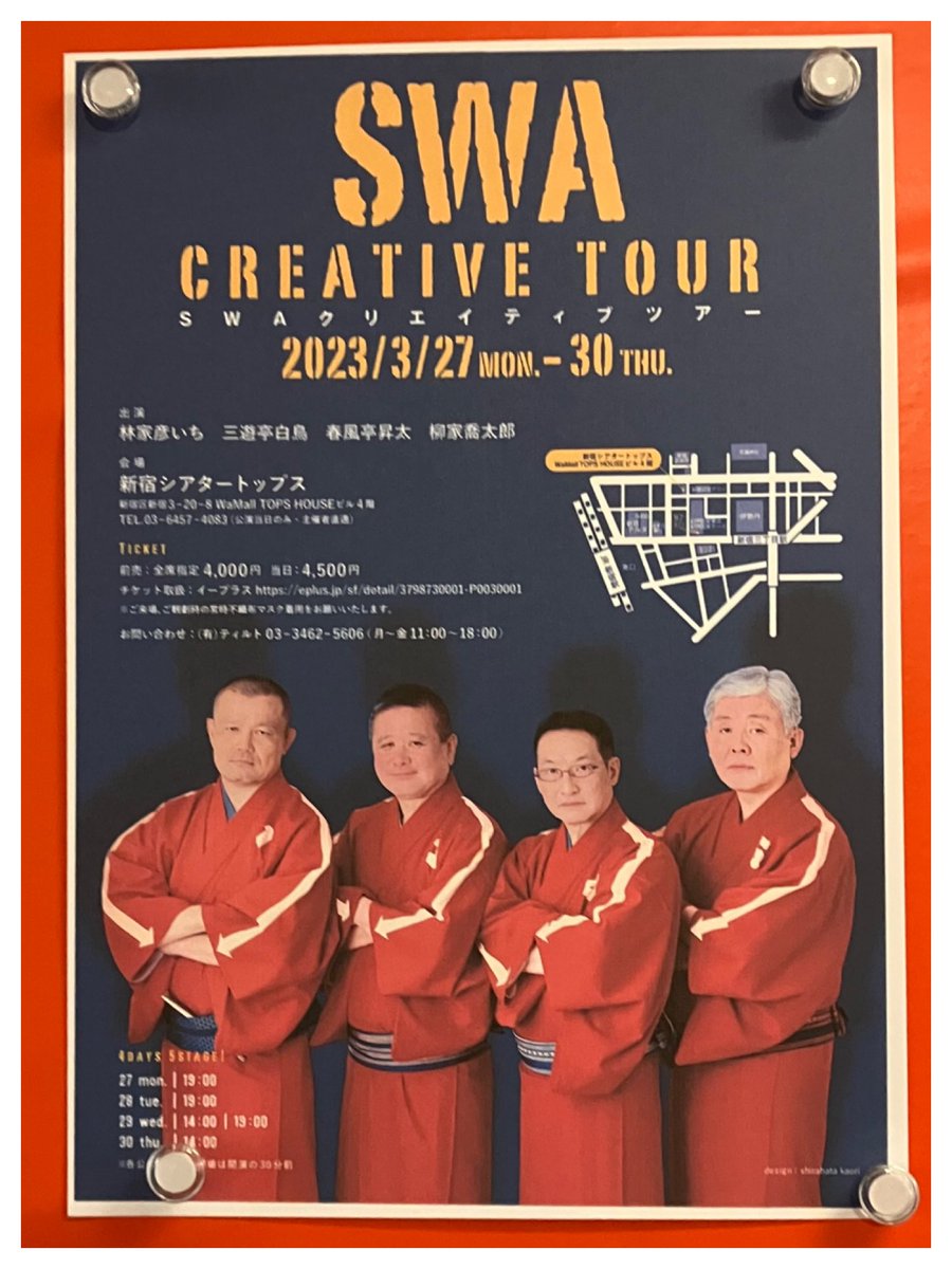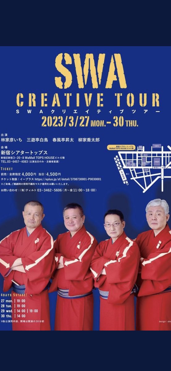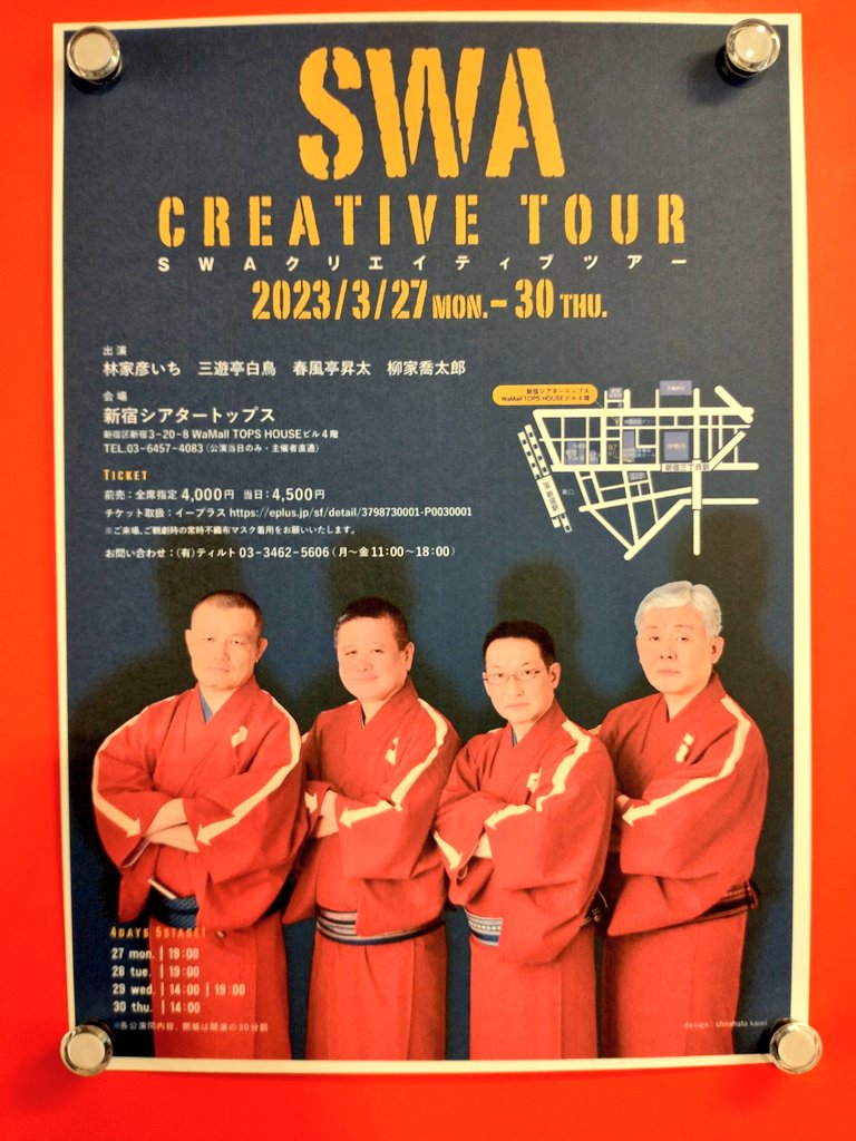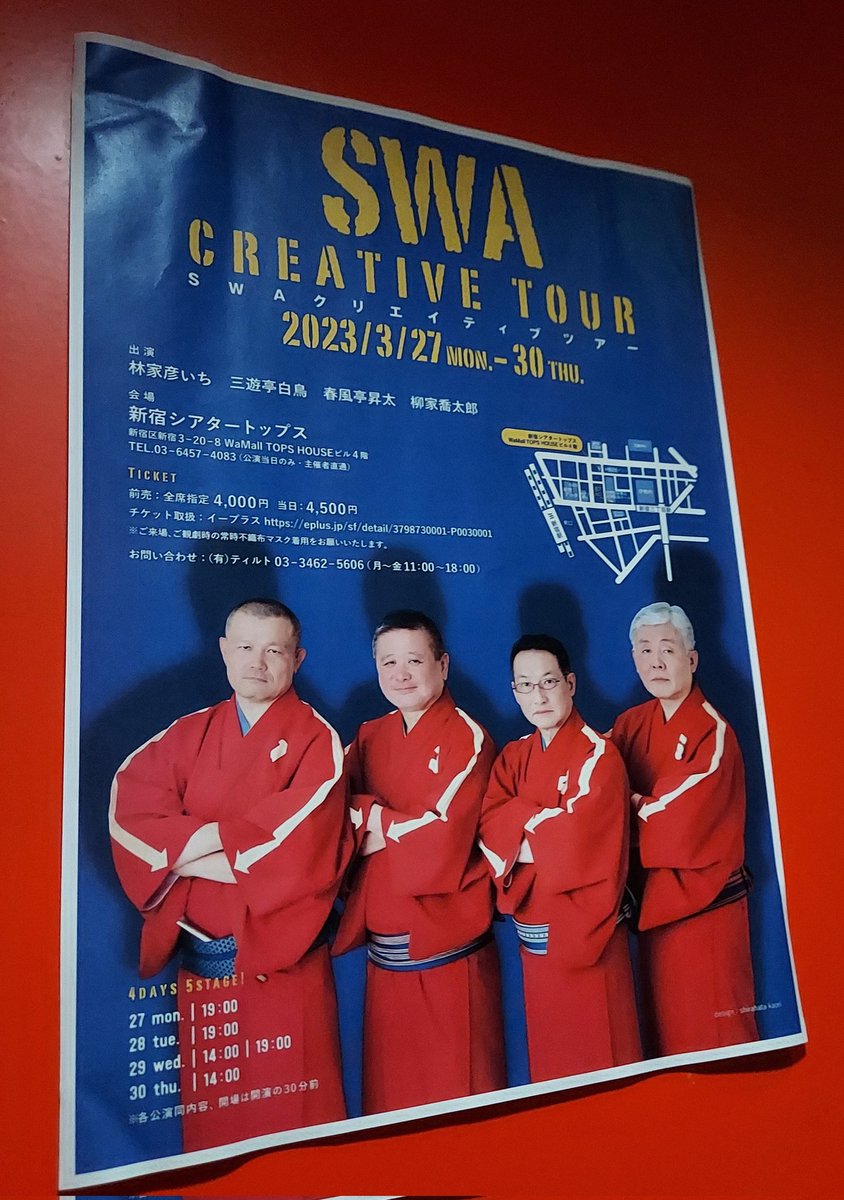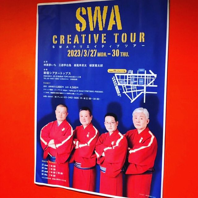 SWAクリエイティブツアー 新宿シアタートップス 後味が良く、前向きな気持ちになれました。2回目ですが、この公演の魅力が少しわかった気がします。 https://t.co/NFzfcFUmpZ #落語 #SWA